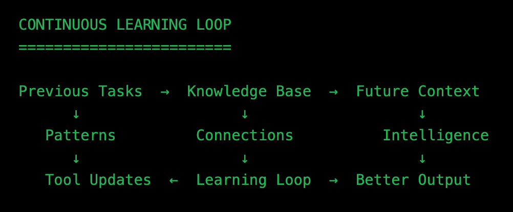 Tool Evolution: The system updates its agents, scripts, and workflows based on what you actually use.