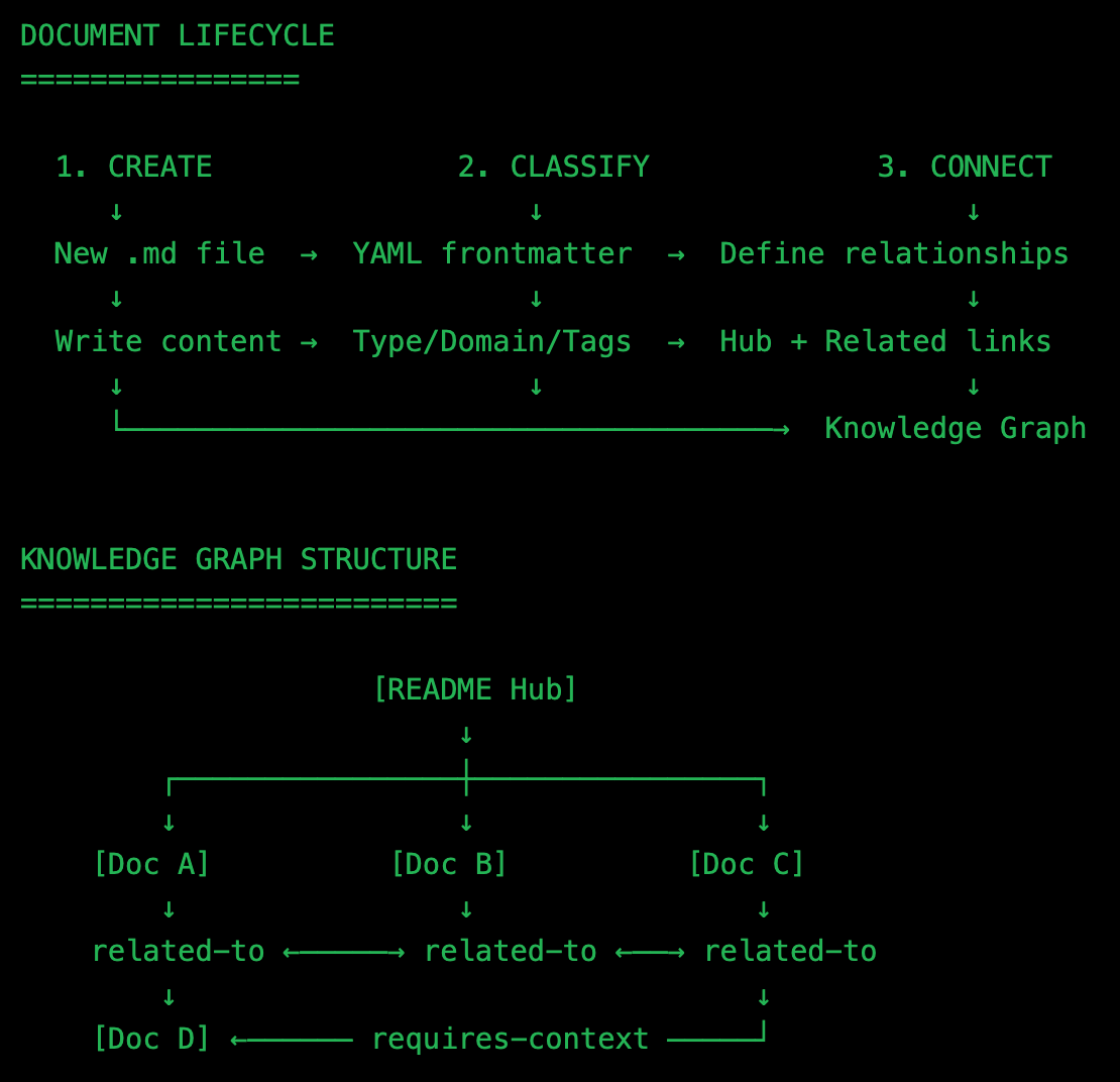 Open Obsidian with RESTLESS BRAIN’s YAML frontmatter and watch the graph light up. Every document becomes a node, every related-to link becomes a connection, every hub becomes a cluster. Your invisible knowledge architecture becomes visible.