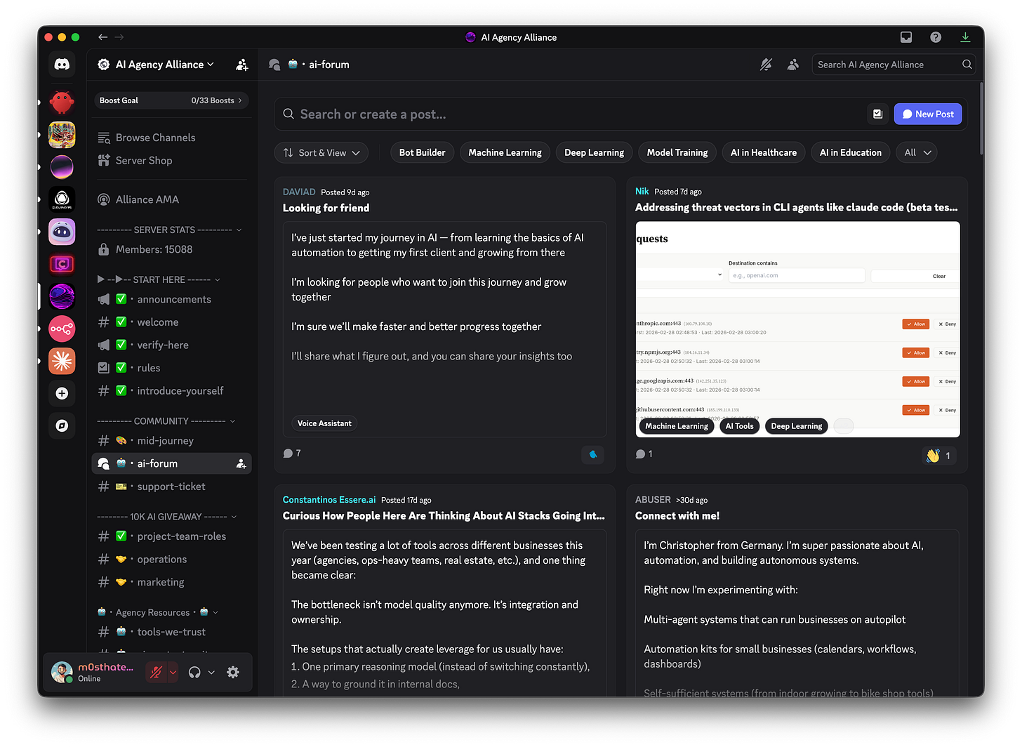 The Discord builders can ship. They understand the technical layer — agent orchestration, function calling, RAG pipelines, and eval frameworks. They know what’s actually possible right now, not just what’s in the press release.
