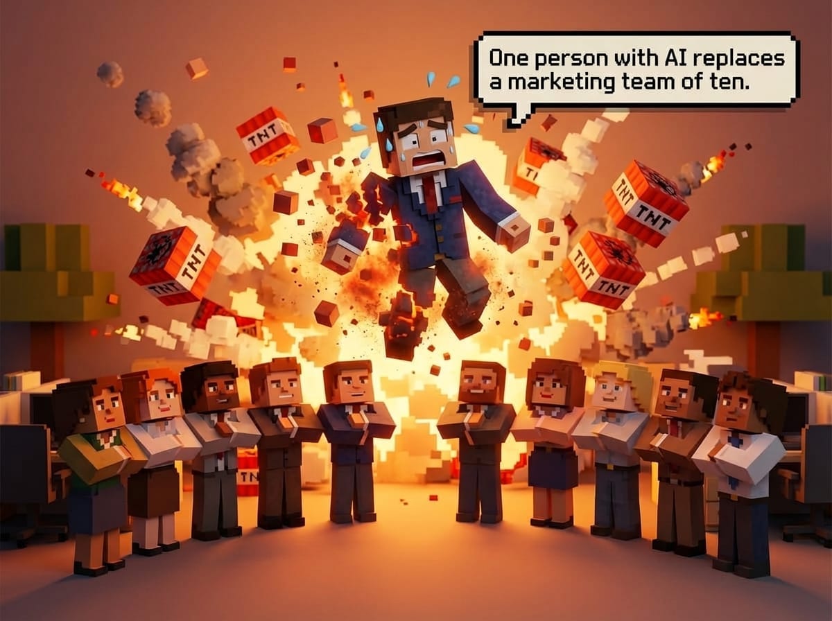 I need to address this because the LinkedIn crowd won’t stop with it. “One person with AI replaces a marketing team of ten.” I’ve seen the posts. I’ve seen the engagement. And I think it’s wrong. More than that, I think it hurts adoption because it scares the exact people who would benefit most.