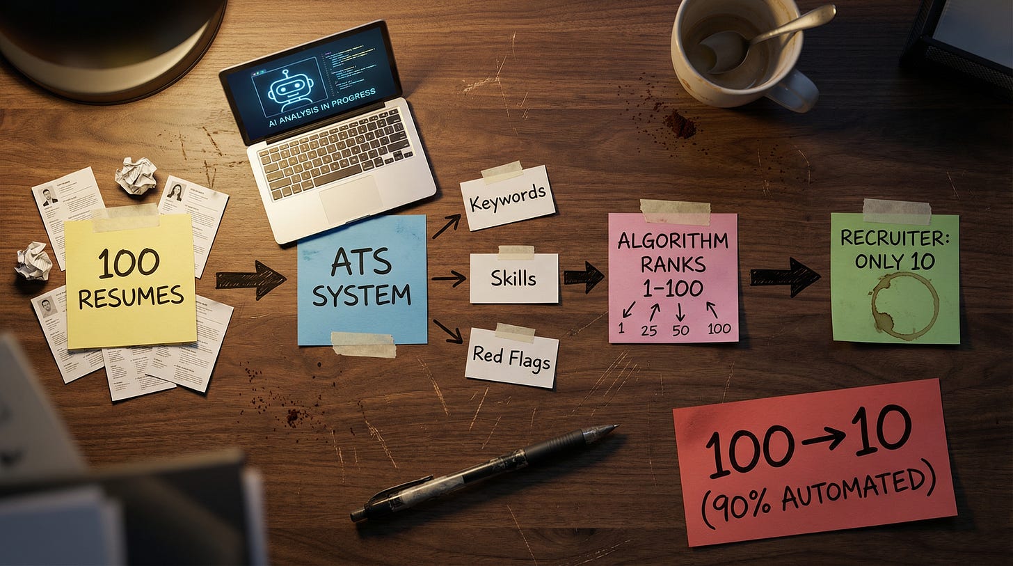 Brilliant framing on teh ATS irony here. The standardization trap is real, what gets me is how recruiters basically optimized themselves into a scoring function. I've been on hiring committees where we skip the recruiter screen entirely and just run our own filters now, which kinda proves the point. The developer comparisson nails it too btw, debugging production issues requires context no algo can standardize yet.