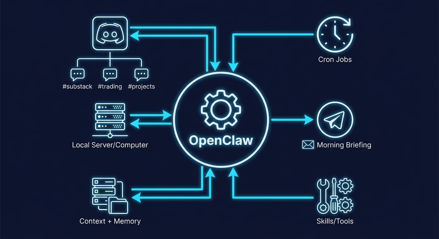The stack itself is unremarkable. OpenClaw for orchestration, a Linux server for persistence, Discord as the main interface, Python scripts for specialized tasks like image generation or web search. Nothing exotic. The interesting part isn’t the technology, it’s the decision to treat the AI like infrastructure rather than a tool you visit.
